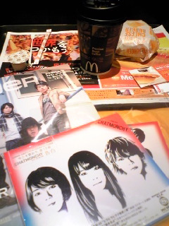 出演(手前から):チャットモンチー「告白」、フリーマガジン「TOWER」、ホットコーヒー(ミルク&シュガー)、チーズバーガー、ほか