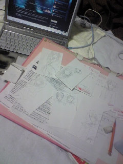 完成してる三枚はペン入れしてから色塗りをしないと鉛筆じゃコピーしたときにあまり線が出ないのがいやだったからやったんだけど、